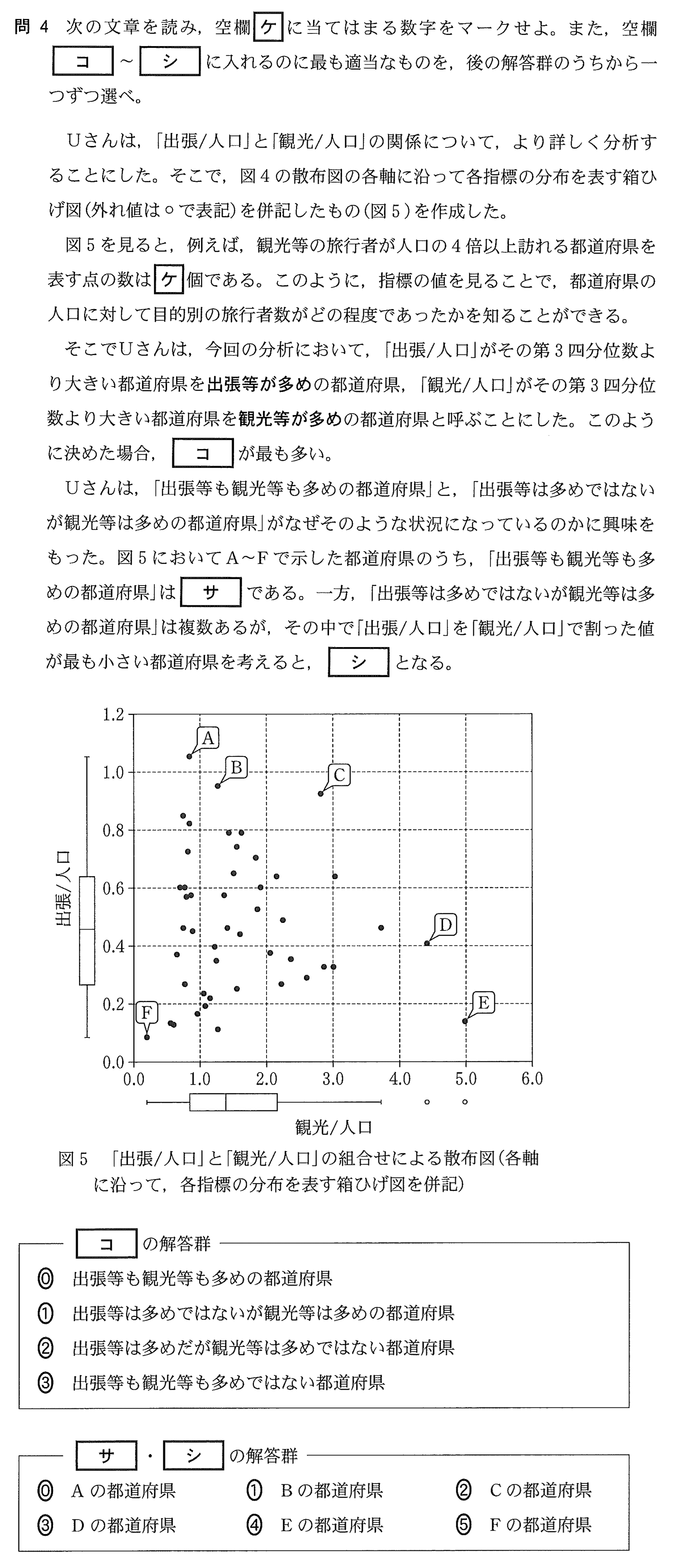 散布図と箱ひげ図[令和7年 第4問 問4 P.34-P.35]