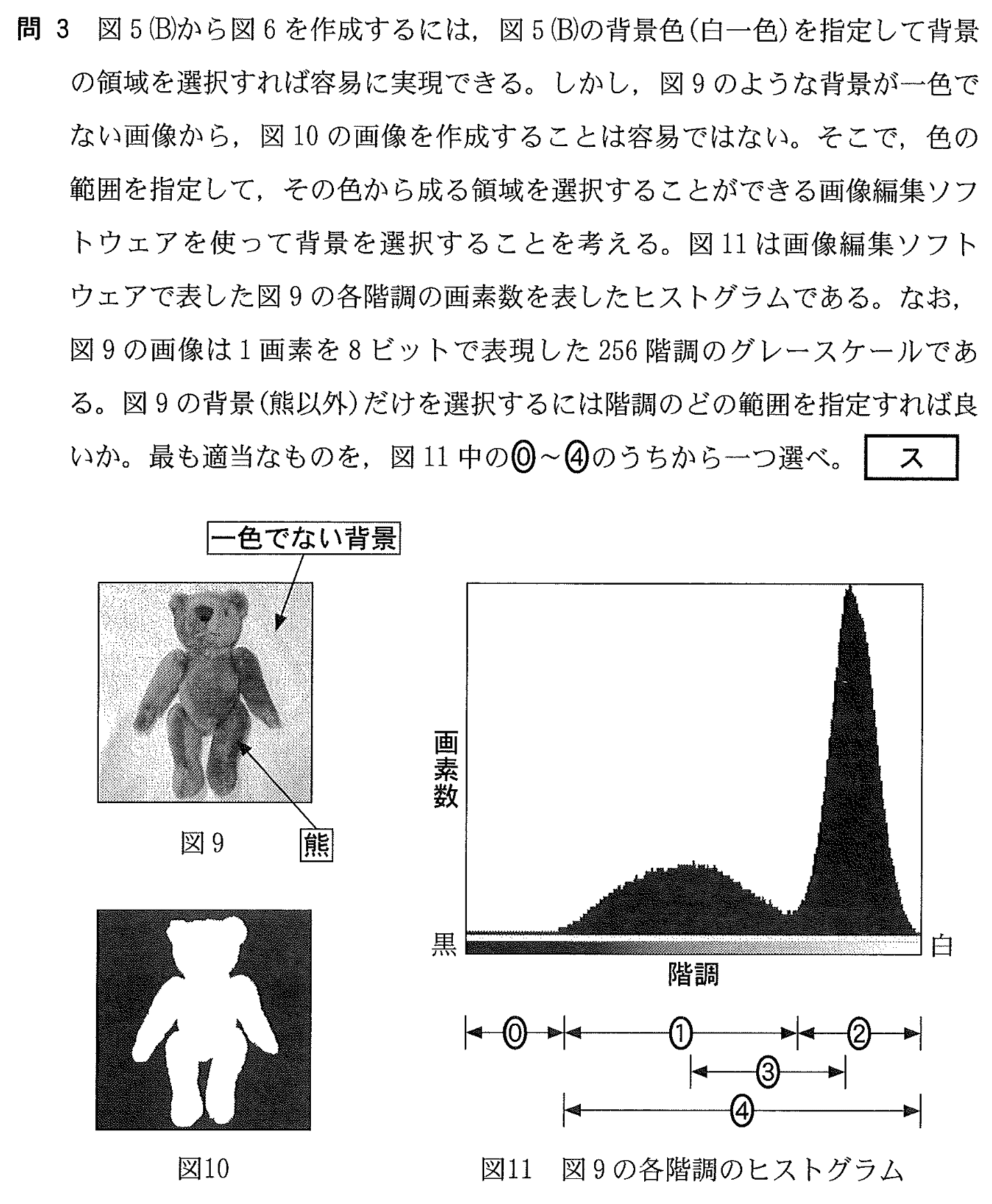 画素のビット演算(階調のヒストグラム)[令和8年 第2問 B 問3 P.21]