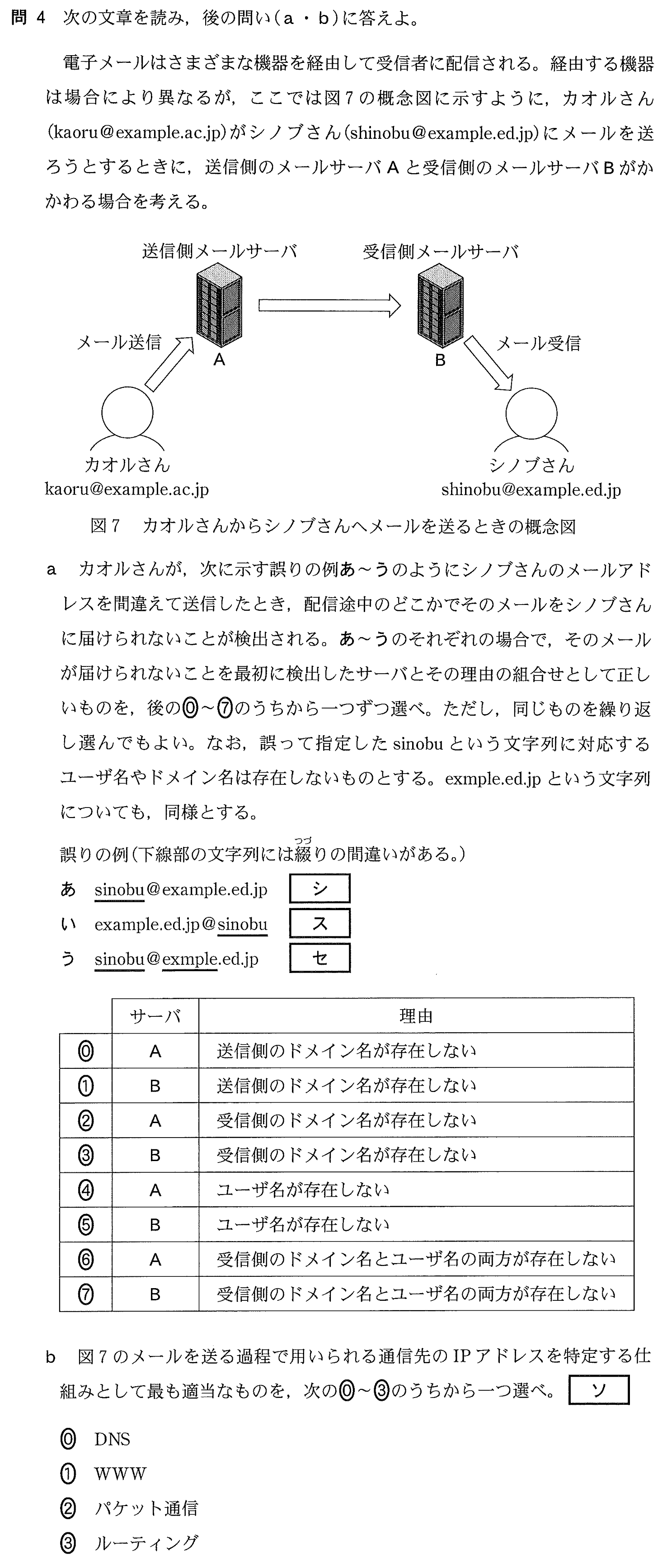 電子メールの仕組み[令和8年 第1問 問4ab P.10-P.11]